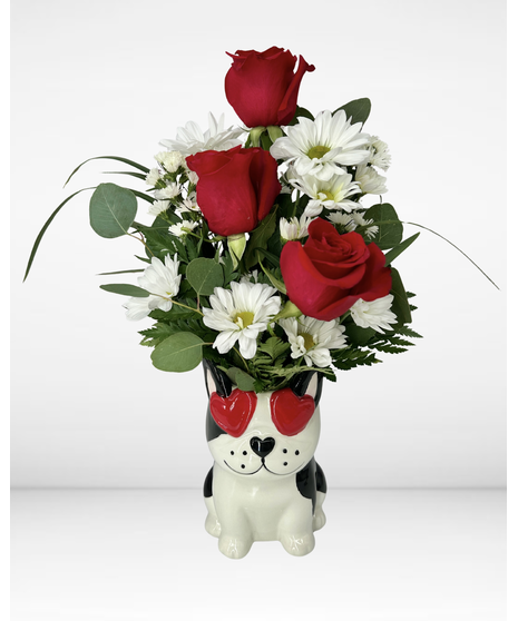 This charming Valentine’s bouquet is a heartfelt way to say “I woof you” to someone special. Ideal for dog moms, dog dads, or anyone whose heart belongs to their four-legged best friend, it blends romance and playfulness into one unforgettable gift. Long after Valentine’s Day, the keepsake dog vase remains as a sweet reminder of love, loyalty, and devotion.